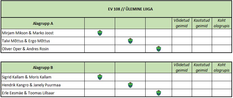 Mängitakse kahes tugevusgrupis ja osalema pääseb kokku 6+6 paari (24 mängijat).