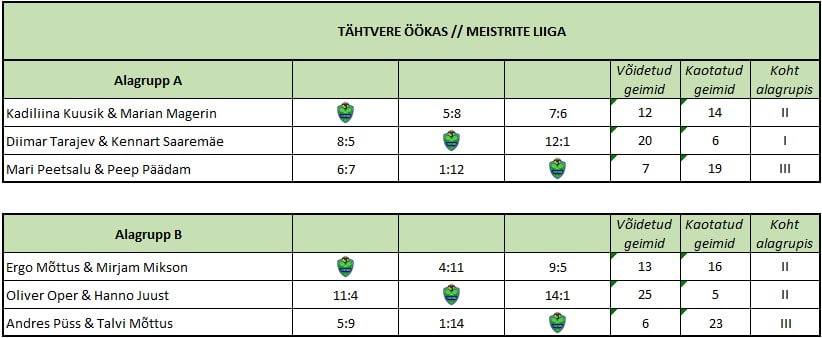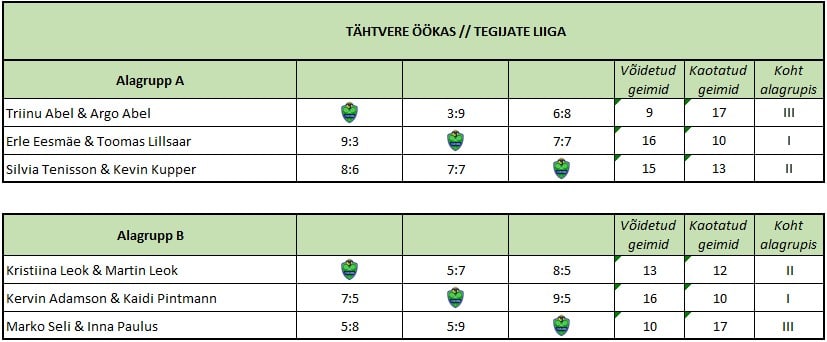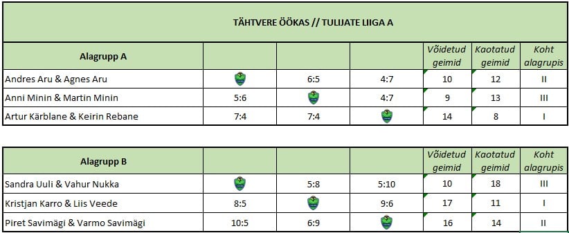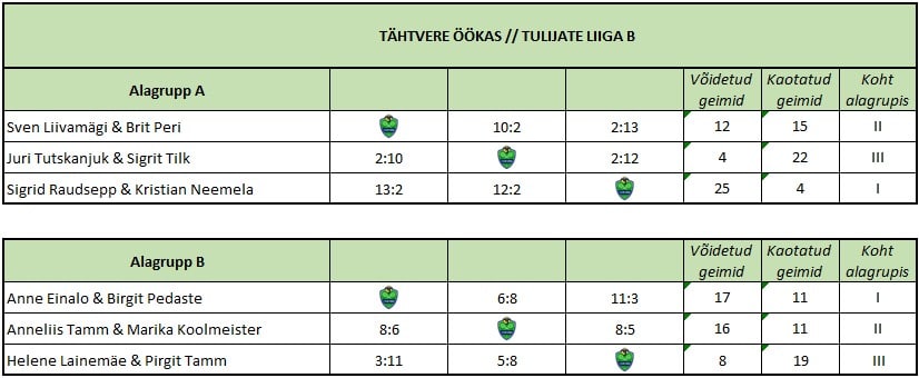 Tulijate Liiga B – Sigrid Raudsepp & Kristian Neemela (finaal vs Anne & Birgit 11:3)